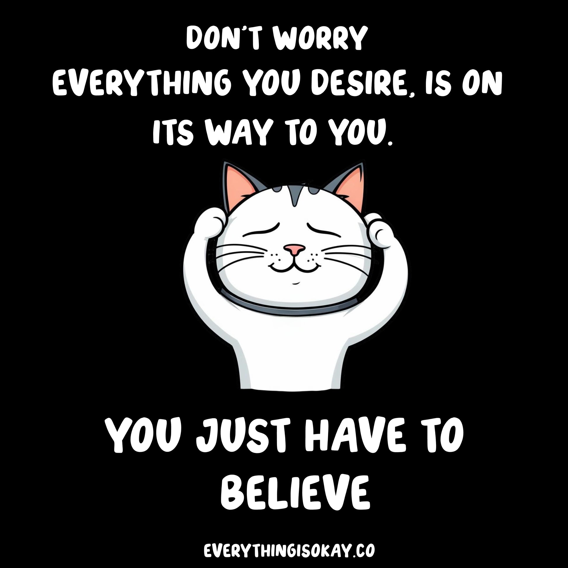 What the kitty says is not a lie! You ALWAYS have to believe in anything you desire before it comes to fruition! Believing is the first step! Desire a goal to achieve? You must believe you can do it before anything or else it won't come true! You got this!
